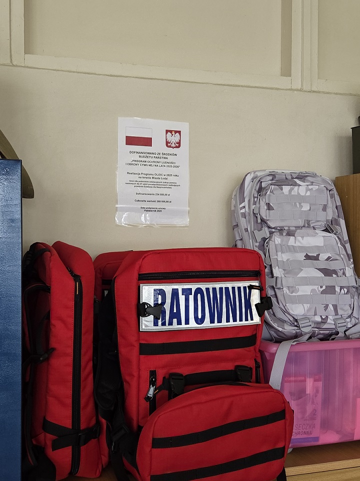 Nasza szkoła realizuje program Ochrony Ludności i Obrony Cywilnej na lata 2025-2026. Z tego tytułu dostaliśmy dofinansowanie na pomoce naukowe, za które zakupiliśmy plansze dydaktyczne, plecak ratunkowy wraz z wyposażeniem, defibrylator treningowy.