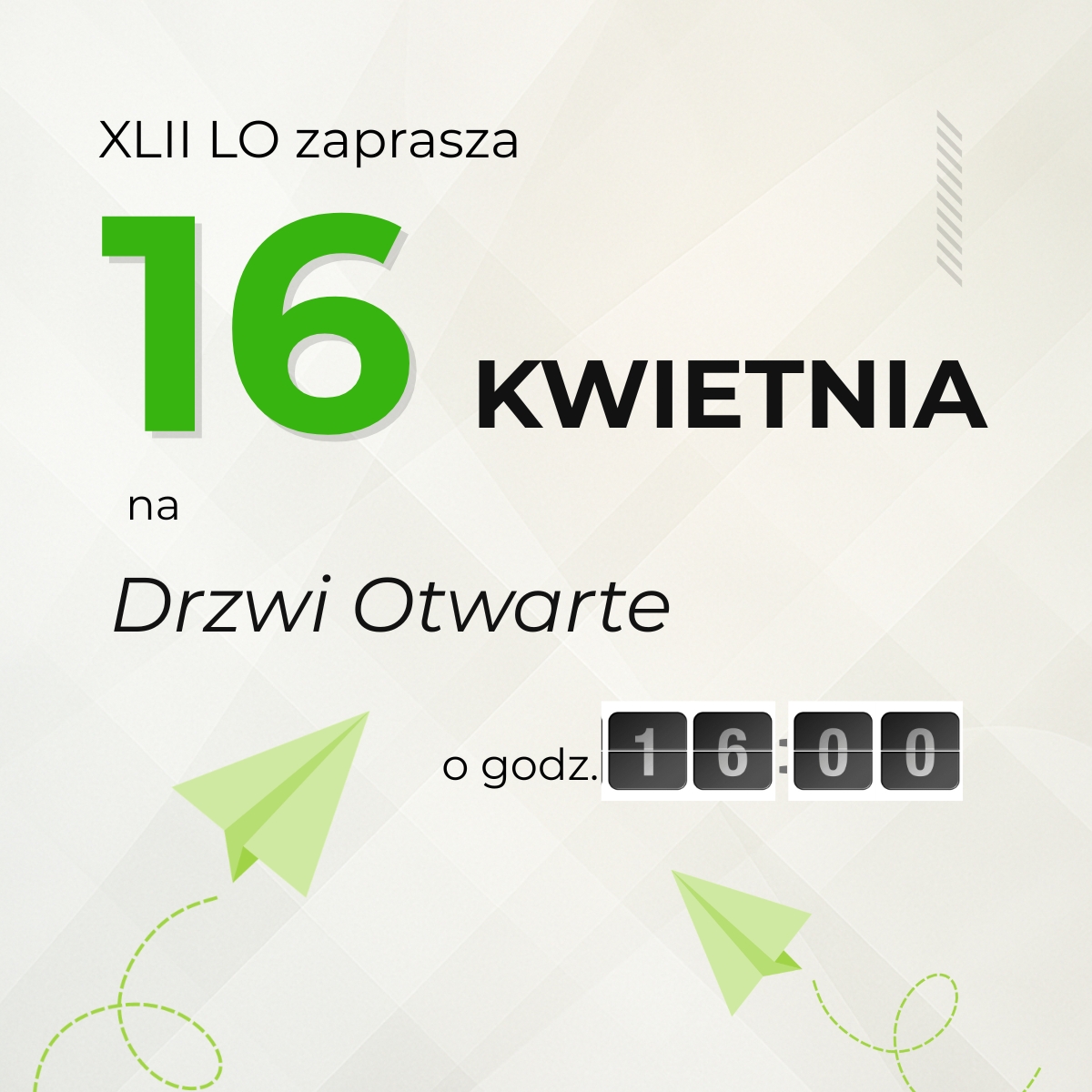 XLII LO zaprasza na Drzwi Otwarte, które odbędą się 16 kwietnia. Zaczynamy o 16.00!