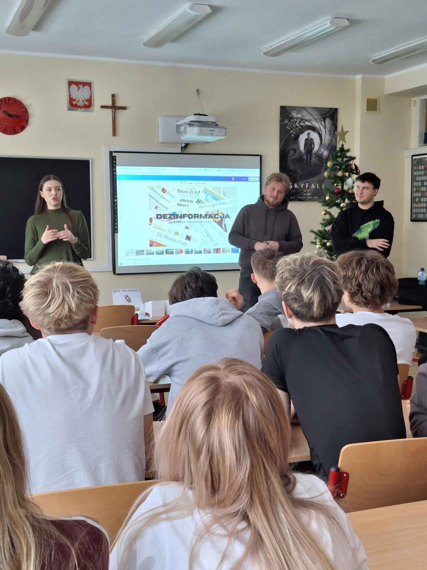 Jak odróżnić fake news od rzetelnej informacji? Czy pojęcia dezinformacja i fake news oznaczają to samo? Na te i wiele innych pytań dotyczących funkcjonowania współczesnych mediów odpowiedzi szukała dziennikarska klasa 3d podczas spotkania z naszymi absolwentami – a obecnie studentami dziennikarstwa i komunikacji społecznej Akademii Humanistyczno-Ekonomicznej w Łodzi.