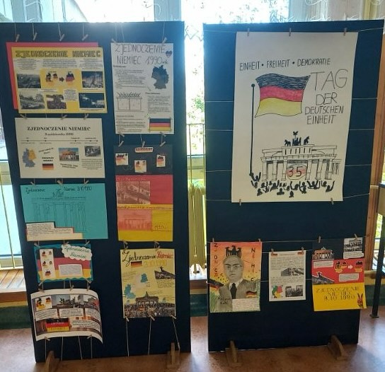 Z okazji rocznicy zjednoczenia Niemiec nasi uczniowie przygotowali wyjątkowe prace plastyczne. Kreatywność, zaangażowanie i historyczna refleksja połączyły się w pięknych rysunkach i plakatach, które można podziwiać na szkolnym korytarzu.